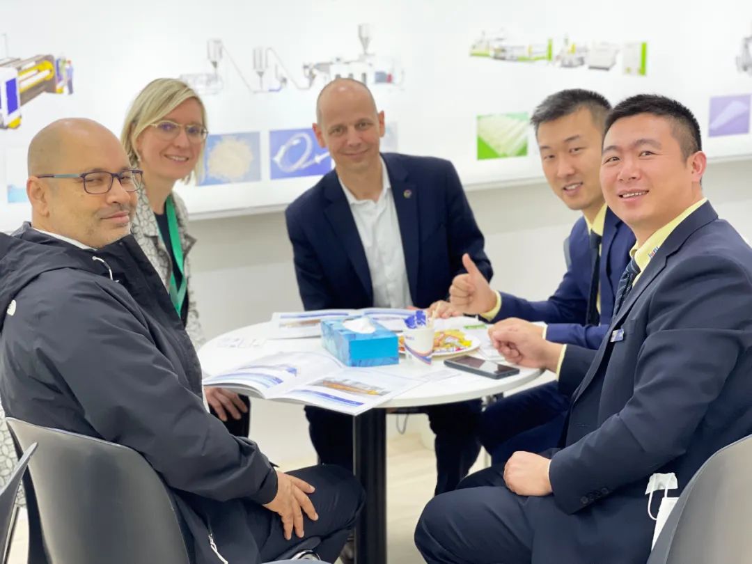 展会的每一天我们都会遇到许多客户总是带着各种各样的问题来咨询我们,无论何种语言和国度;无论从原料、机械到制品终端,对我们来说都是学习和成长的过程,当我们走在一起,分享彼此的知识、经验和见解,问题就不再是问题,而是前行的喜悦。在现场我们把最好的产品和技术展示给客户,寻找到最好的合作伙伴;另一方面把展会中找到的最好项目带回来,通过团队优化升级,形成一个良性的闭环。